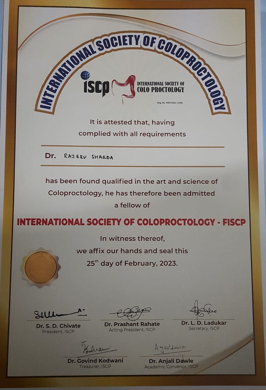 Dr Rajeev sharda is now executive member of ASOCIATION OF COLON AND RECTAL SURGEONS OF INDIA( 2023-25)